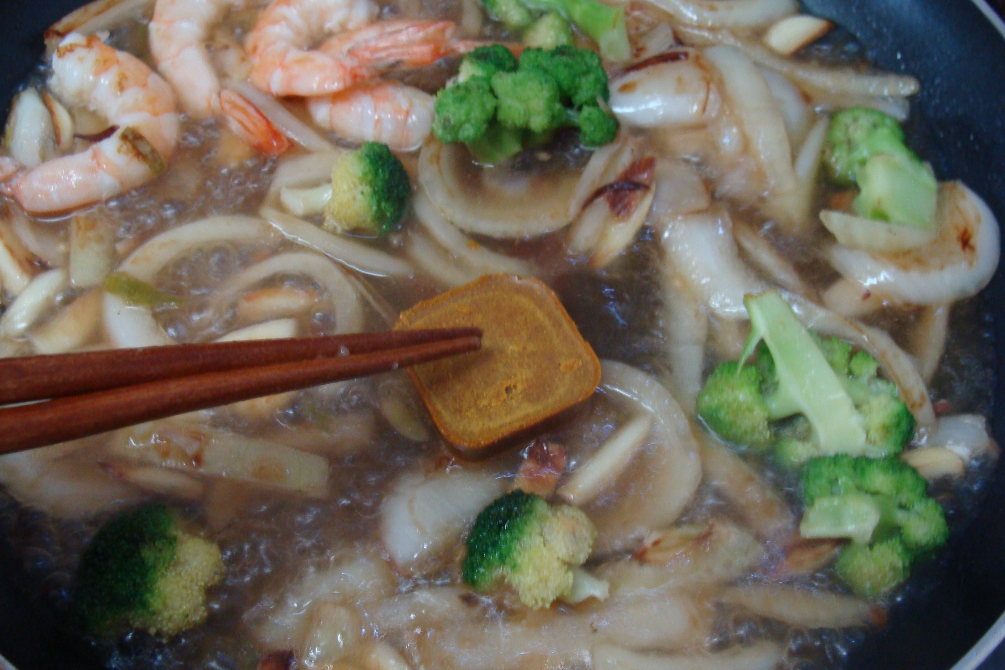 물이 끓으면 고형카레 1개넣고 풀어주세요.
