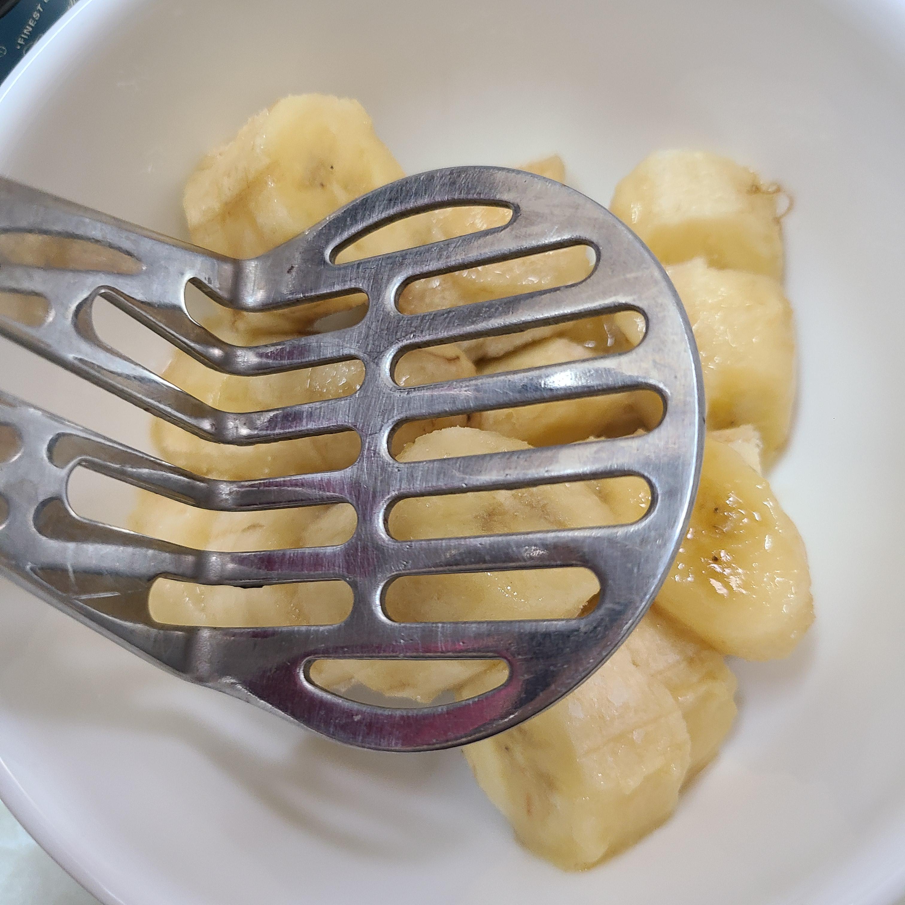 바나나를 으깨서 묽게 만들어줘야 해요!