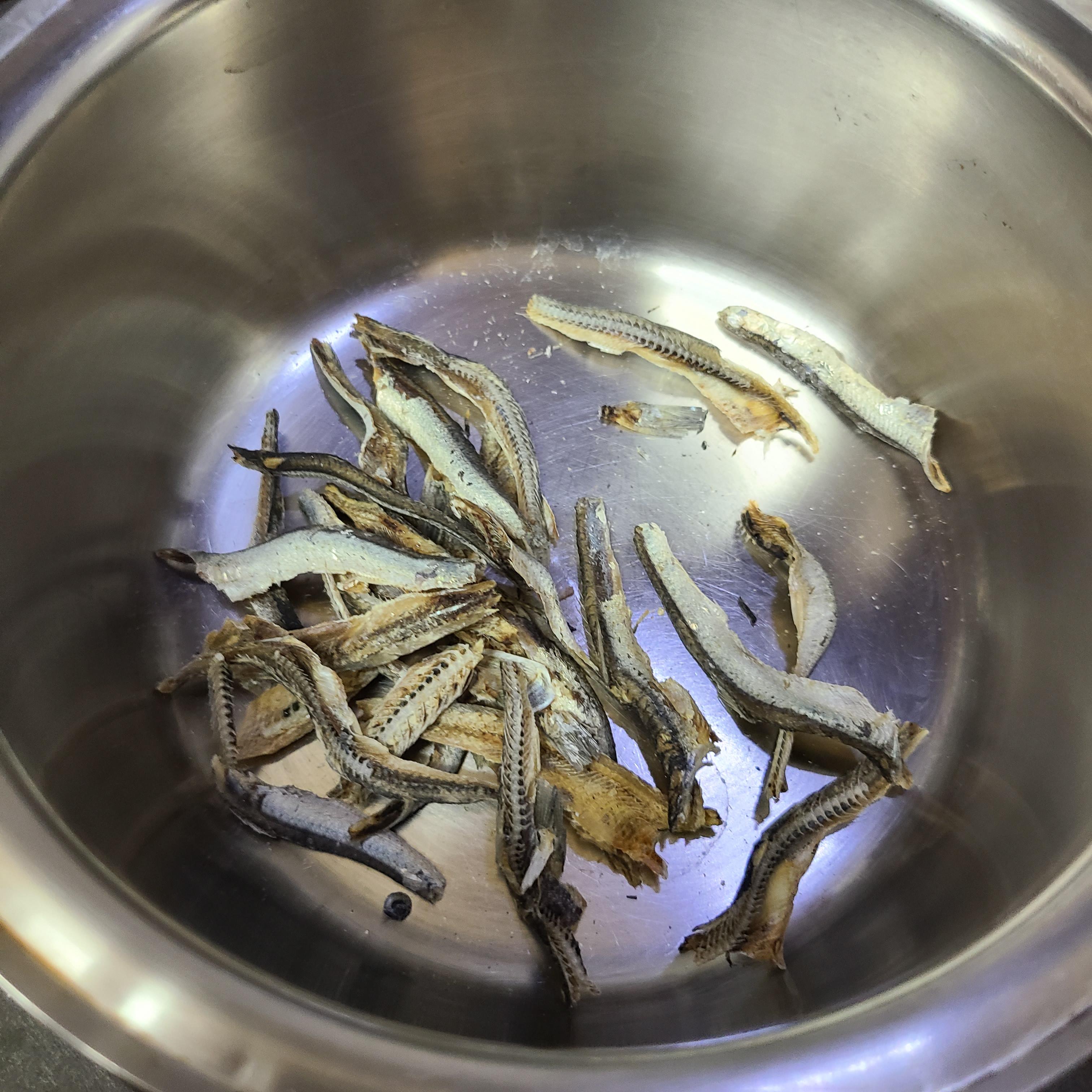 국물용 멸치를 기름 없이 볶다가