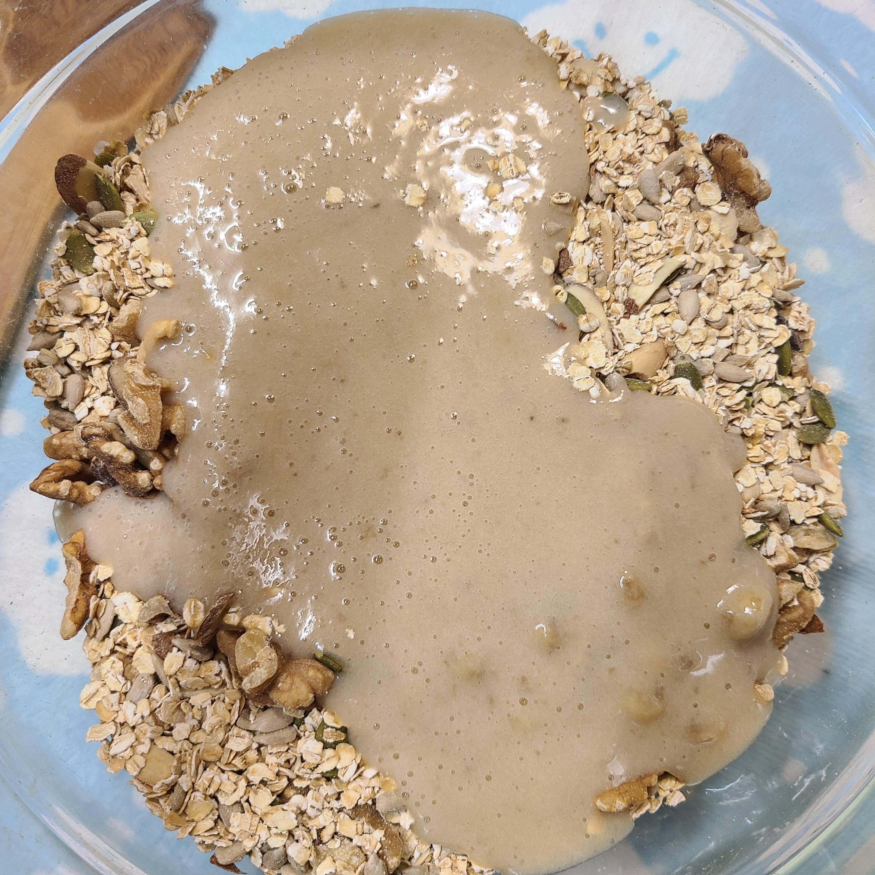 믹스 견과류 260g에 퀵 오트 260g 넣고 섞어주세요.