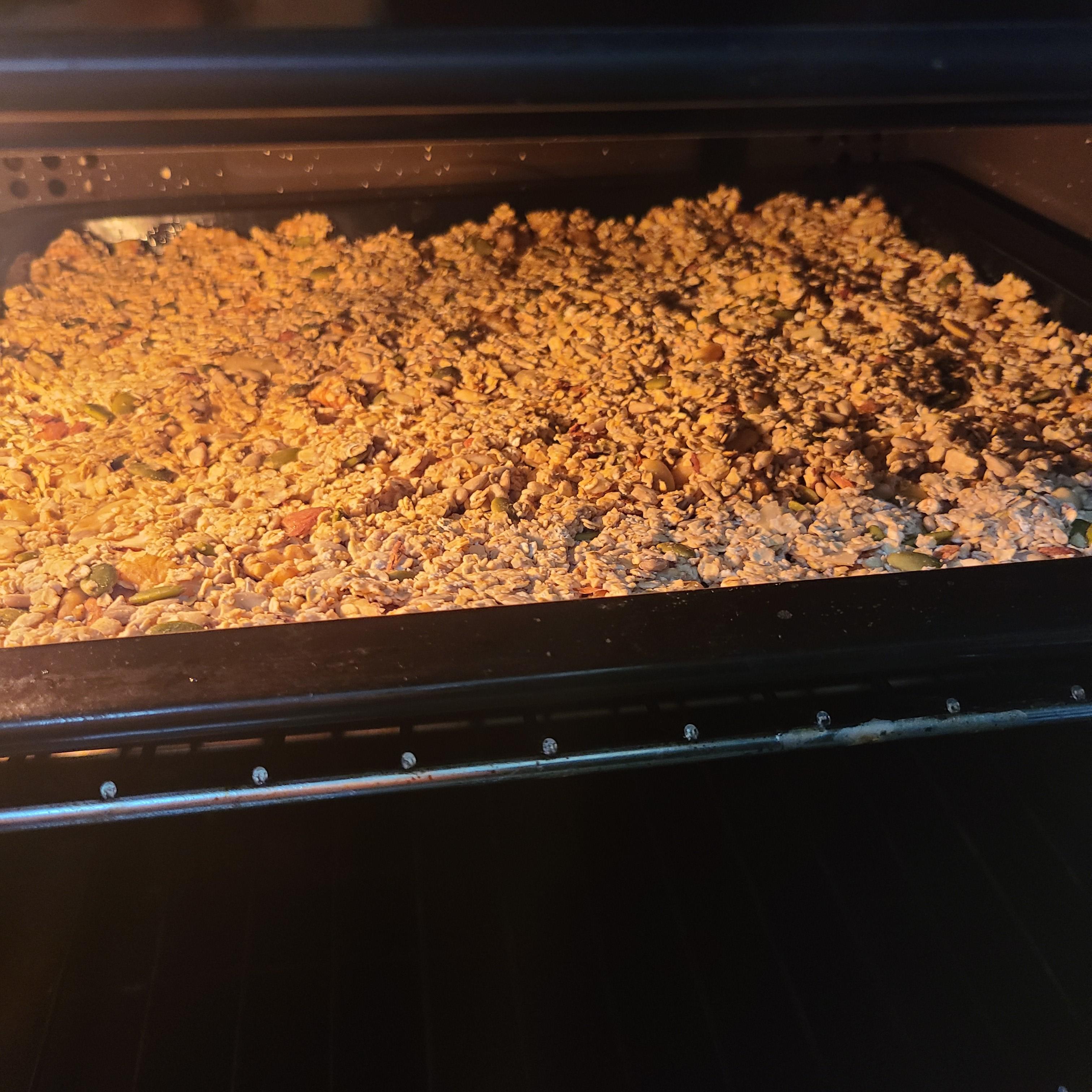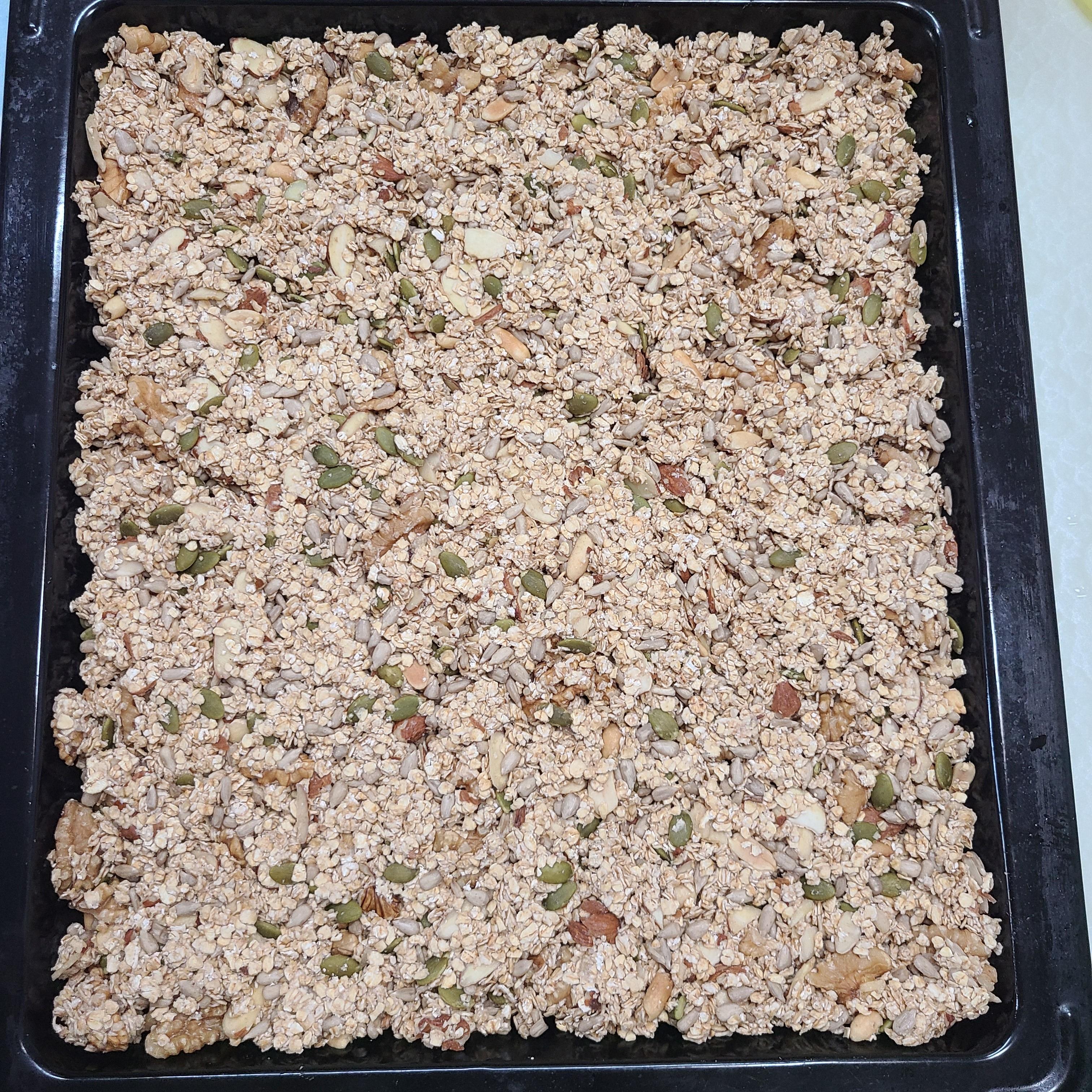 그래놀라 넓고 얇게 펴주시고 오븐으로 넣어줍니다!