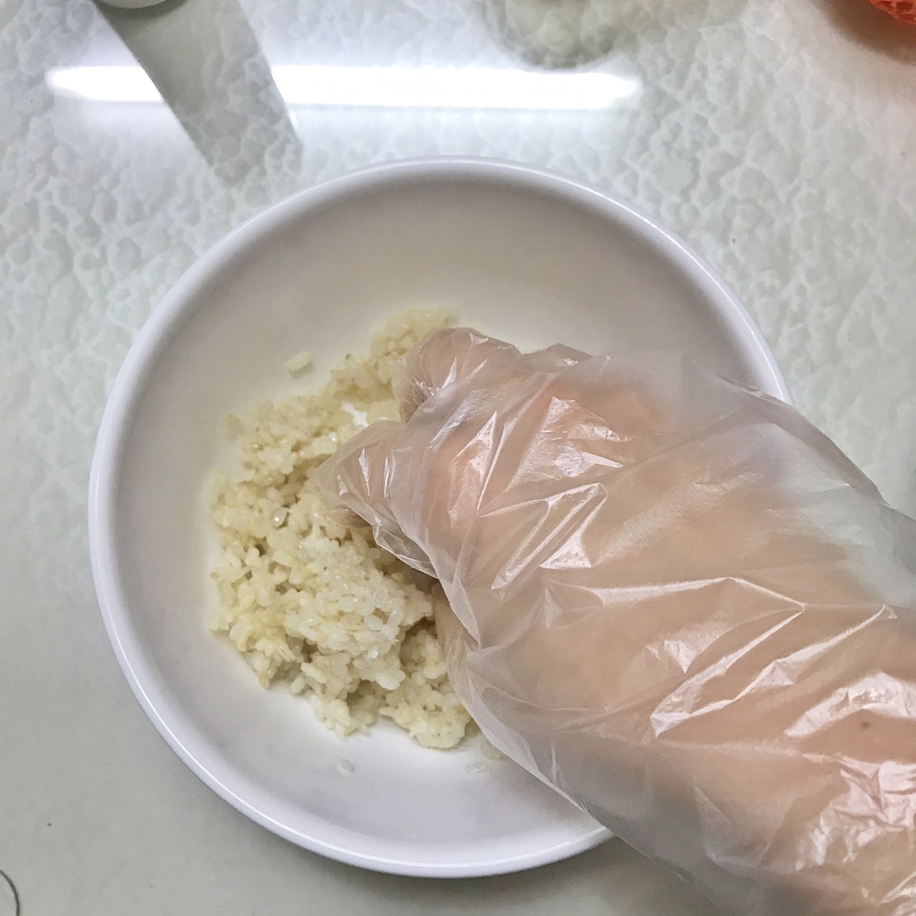 숟가락으로 섞으면 잘 안섞이기때문에 장갑을 끼시고