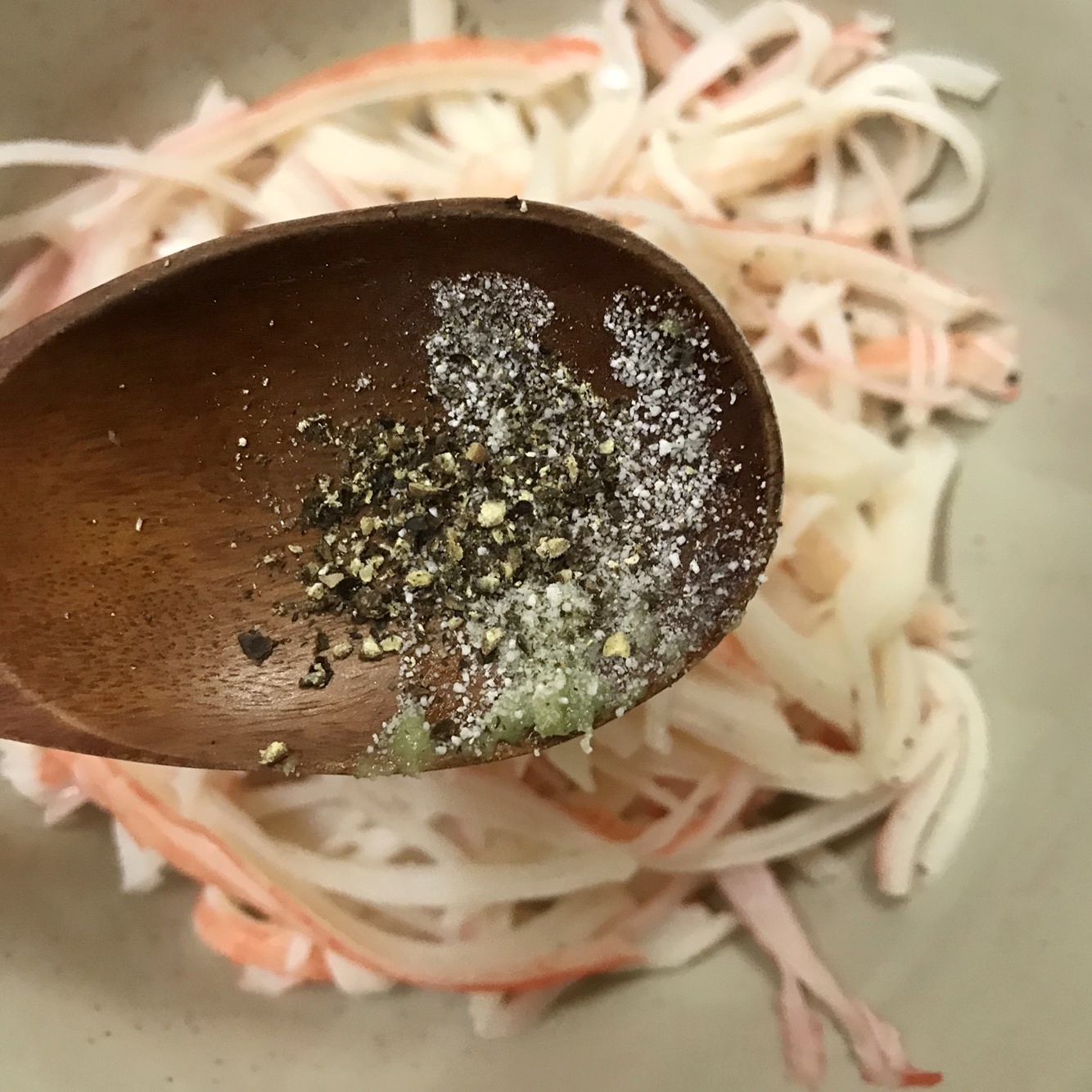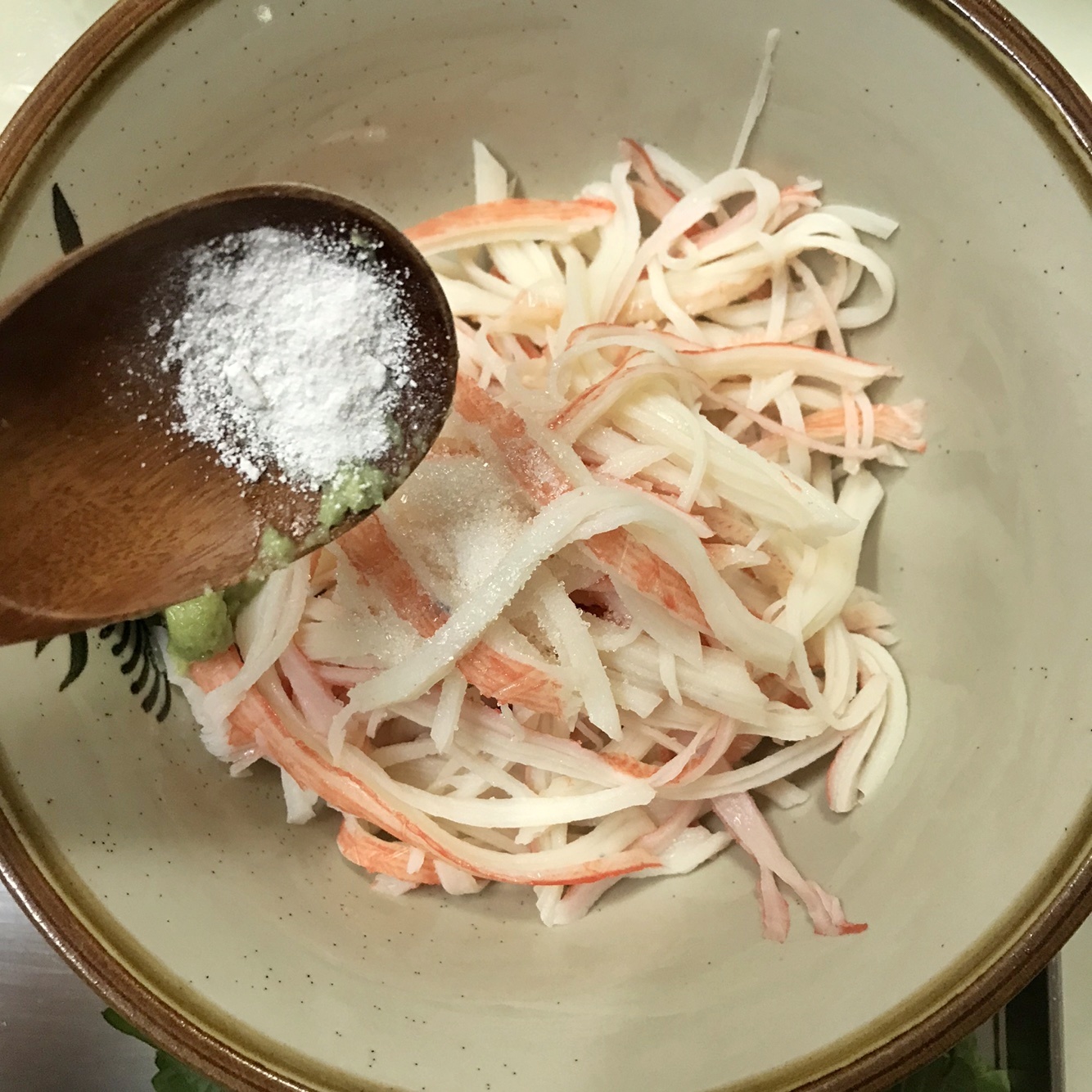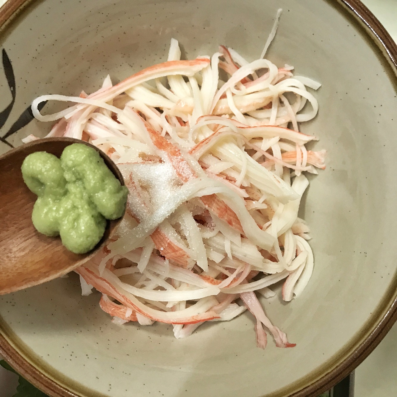 마요네즈1스푼 와사비 1/2스푼 소금1/3스푼 설탕1/4스푼 후추