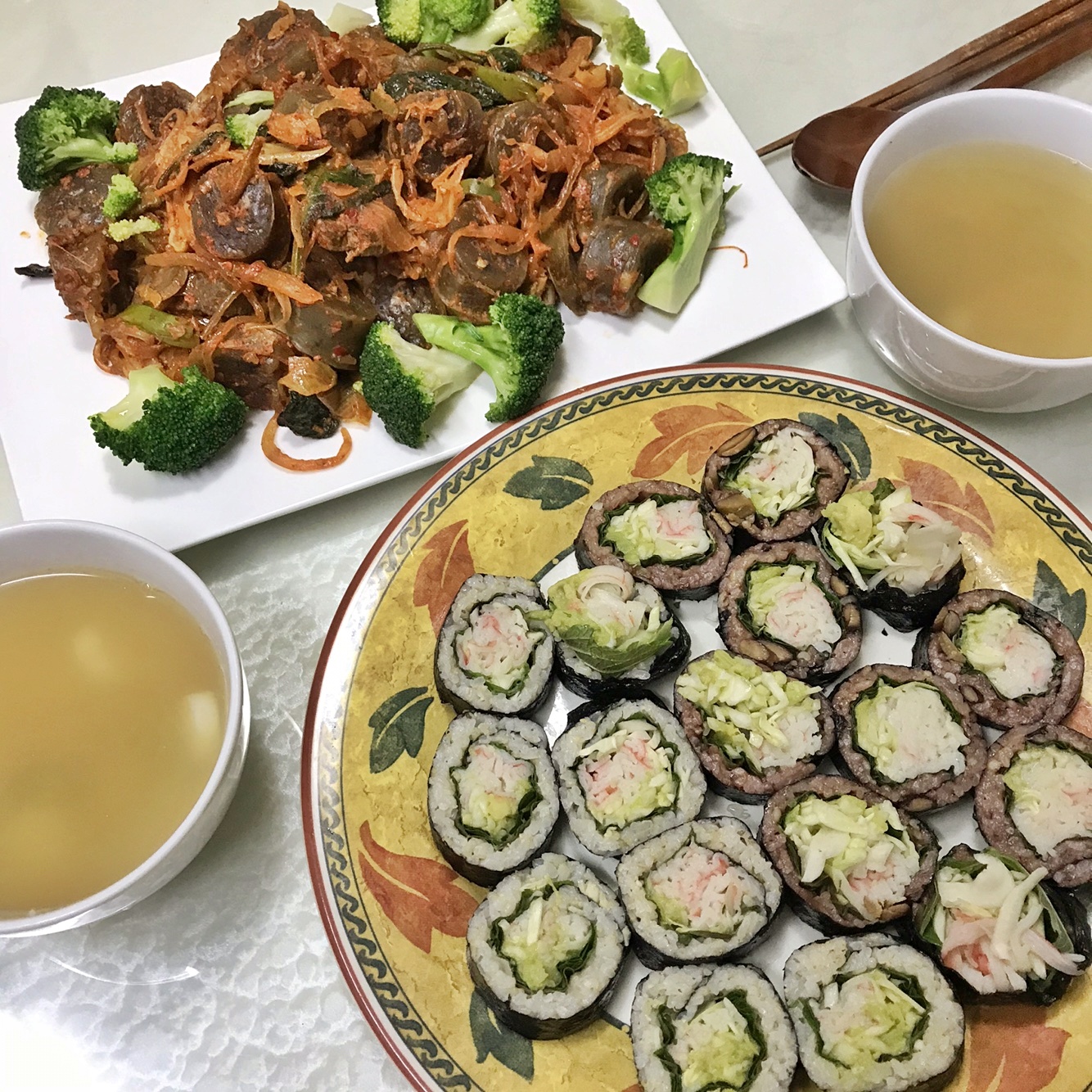 저탄수레시피! 크래미샐러드김밥과 훈연멸치국물!