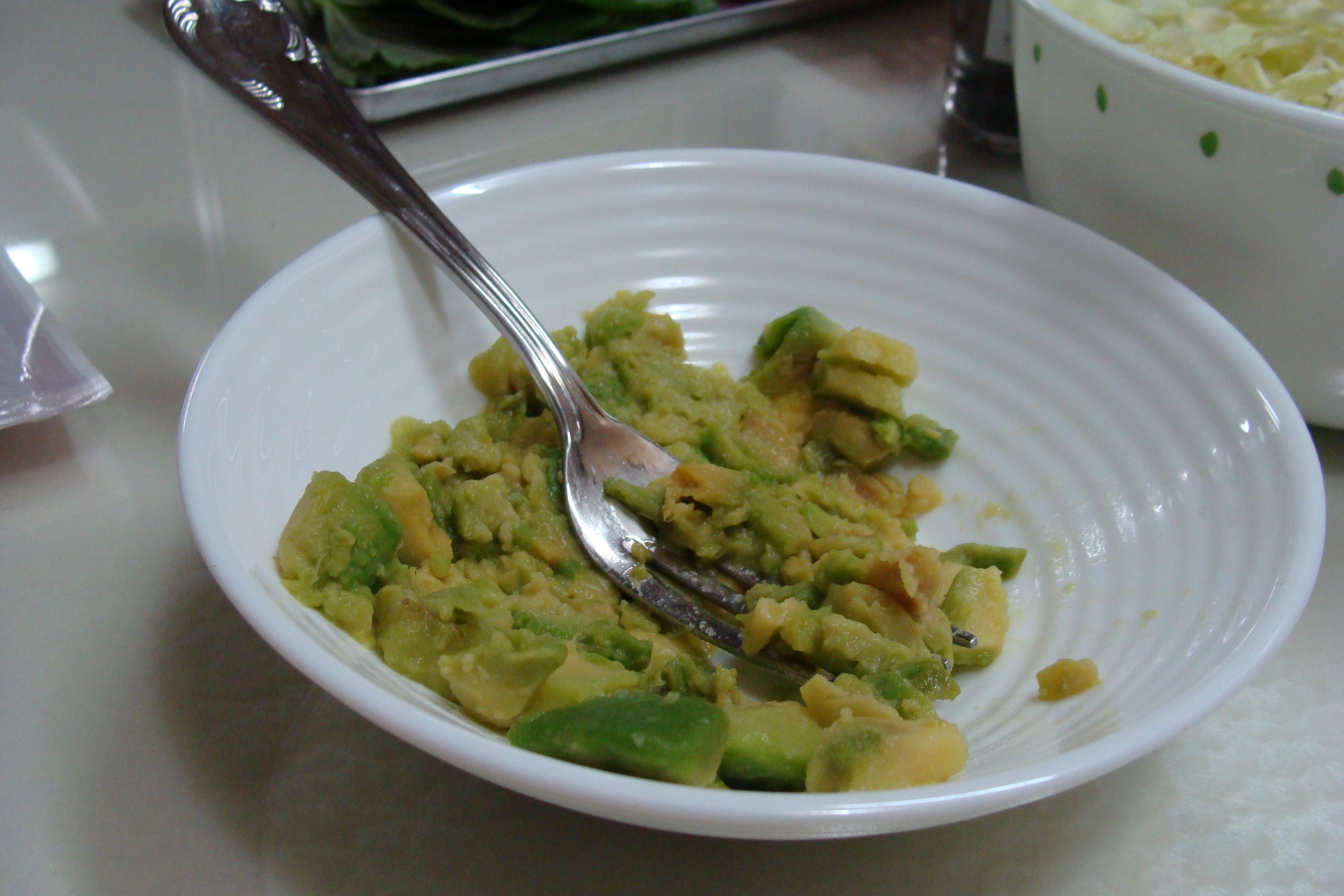 냉동아보카도 전자레인지에 돌려서 녹인다음 포크로 으깨고